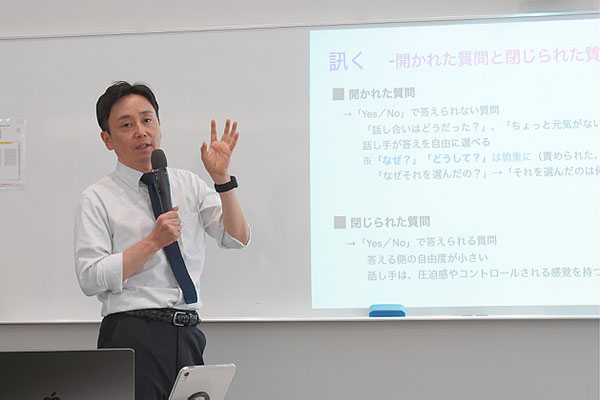 東海大学 キャンパスライフセンター所長 内田匡輔氏の挨拶に続き、「学生支援・学生相談の基礎と実践」をテーマにした研修について、明星大学 学生支援ユニット学生相談室チーフカウンセラー 田村友一氏に解説していただきました。